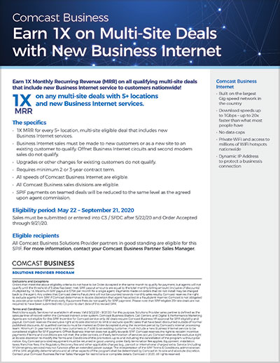 Even Better: 1X SPIF on Multi-Site Deals with New Business Internet for 5+ Locations See Flyer Here